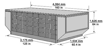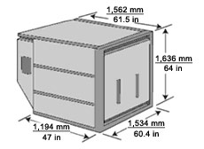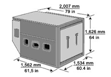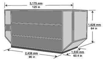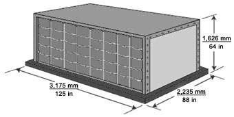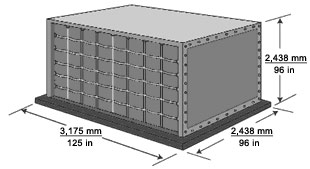 External Dimensions: (L x W x H) 3,175 mm x 2,438 mm x 2,438 mm (125 in x 96 in x 96 in)