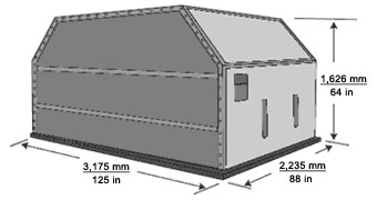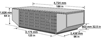 External Dimensions: (L x W x H) 3,175 mm x 2,438 mm x 1,626 mm (125 in x 96 in x 64 in)